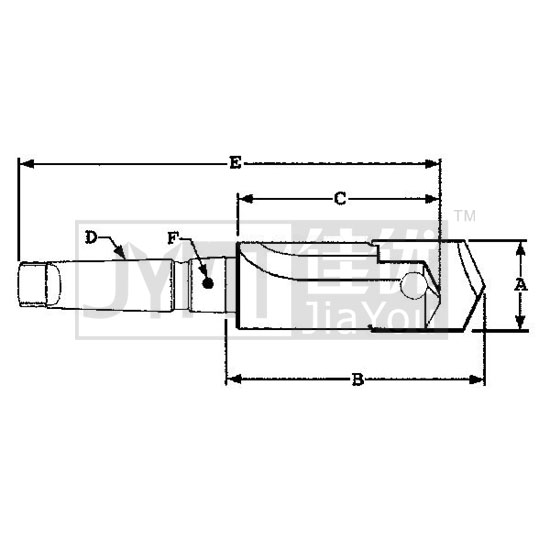 A:刀頭直徑切削范圍B:新刀參考長度C:刃長D:柄部莫氏錐度長度E:全長F:管螺紋絲錐